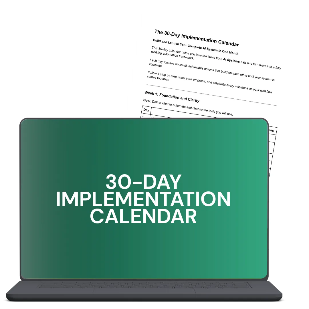 BONUS #4: The 30-Day Implementation Calendar - A step-by-step plan that helps you build your complete AI system in just one month.